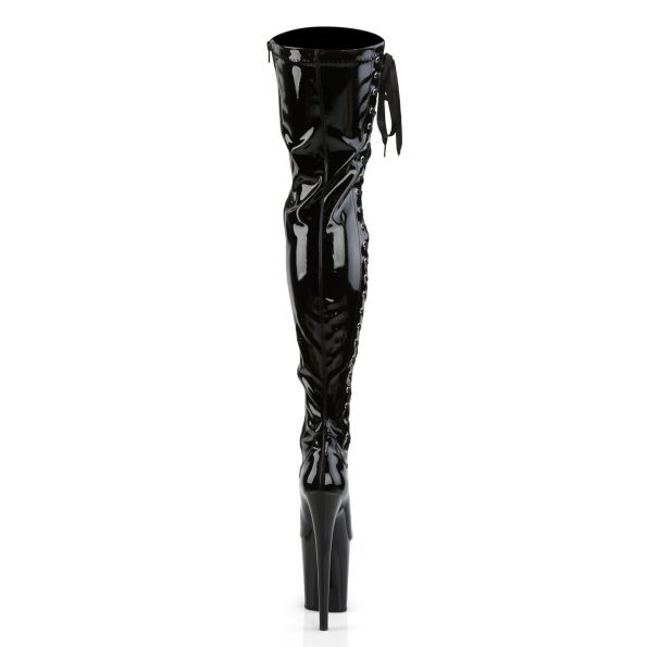 Bota Flamingo Alta hasta el muslo tacón de 20 cm y plataforma de 10cm, con cierre lateral y cintas en la parte lateral.