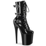 Botín Flamingo Alto con tacón de 20 cm y plataforma de 10cm, con cierre lateral y detalle de hebillas en terminado charol.