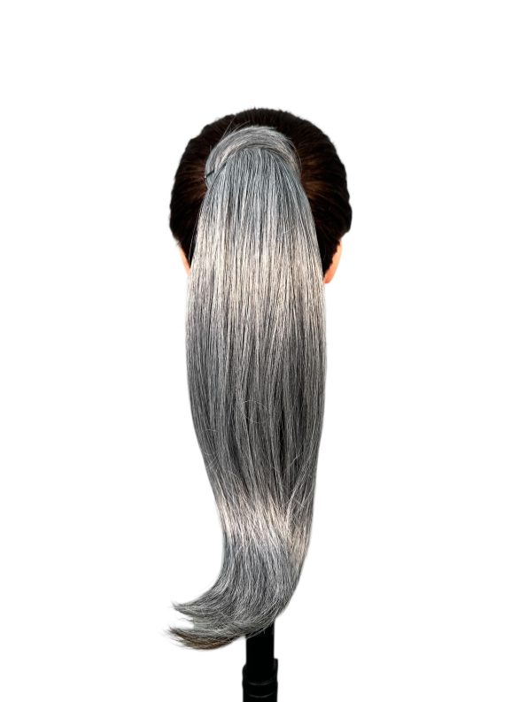 Chongo Pony, postizo de cabello sintético elaborado con fibra manejable al calor, fácil colocación con velcro y peineta, largo aproximado de 66 cm.