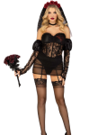 Deja un rastro de corazones rotos con el disfraz de 4 piezas Heartbreak Bride de Leg Avenue. Este sexy disfraz de Halloween para mujer incluye un vestido de novia negro compuesto por un body de encaje con falda de liga transparente y detalle de corazón roto con purpurina, mangas abullonadas de encaje, velo de encaje y gargantilla. Ramo no incluido.