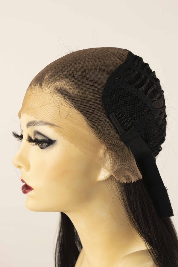 Peluca Bisa de cabello sintético con lace front de cabello largo aproximado de 75 cm desde la raíz hasta la punta.