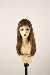Largo aproximado de 55 cm, con fleco y simulación de cráneo (silicón), ajustadores en la parte baja de la nuca para adaptar el tamaño de la peluca a cada persona.