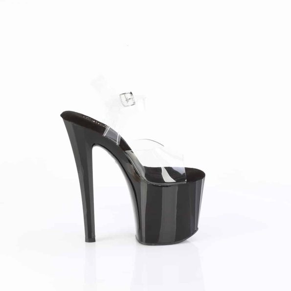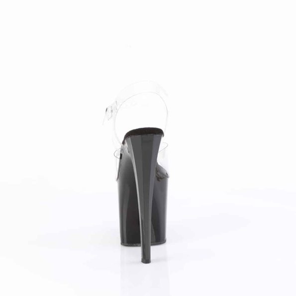 Zapatilla de Pol Dance con 19.5 cm de tacón, 9.5 cm de plataforma y con sujetador en el tobillo. Tiene diamantes en el tacón y parte delantera de la zapatilla.